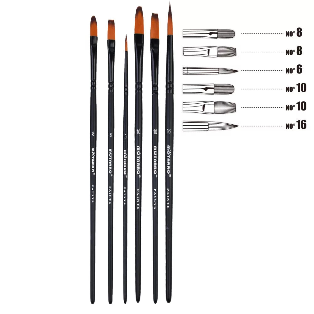 6db-os fekete ecset készlet - Motarro (6, 8, 8, 10, 10, 16)