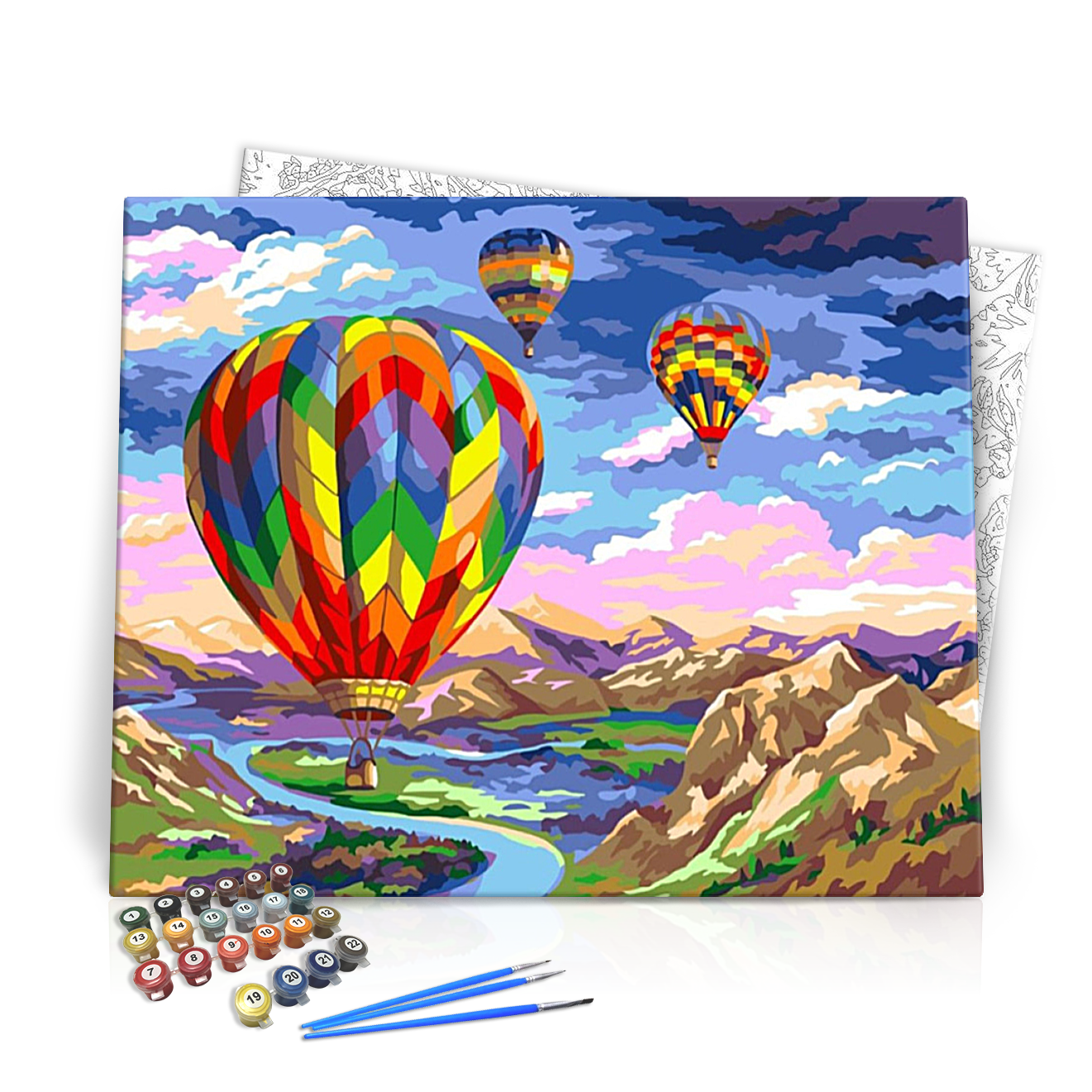 Oszd meg a kreativitás örömét ezzel a gyönyörű számfestő készlettel, amely a fellegekbe repít! Változatos színekkel és mintákkal tele, ez a festmény nemcsak a szemedet gyönyörködteti, hanem a lelkedet is megnyugtatja. A magasba szálló léghajók látványával és a lenyűgöző tájjal mindannyian felfedezhetjük a festészet varázslatos világát!