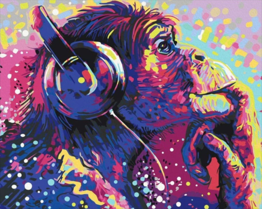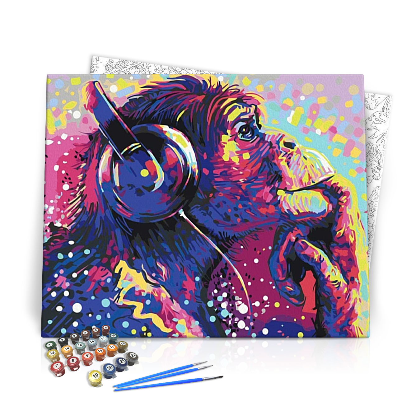Fedezze fel a kreativitás világát az Állati Zene számfestő készlettel! Ez a lélegzetelállító kép egy figyelemfelkeltő majmot ábrázol, akinek fejhallgatója van, és mélyen elmerült a zene hallgatásában. A színek vibráló palettájában a pink, kék és sárga árnyalatok összefonódnak, hogy egy energikus és játékos hangulatot teremtsenek, amely mindenki szívét megdobogtatja.