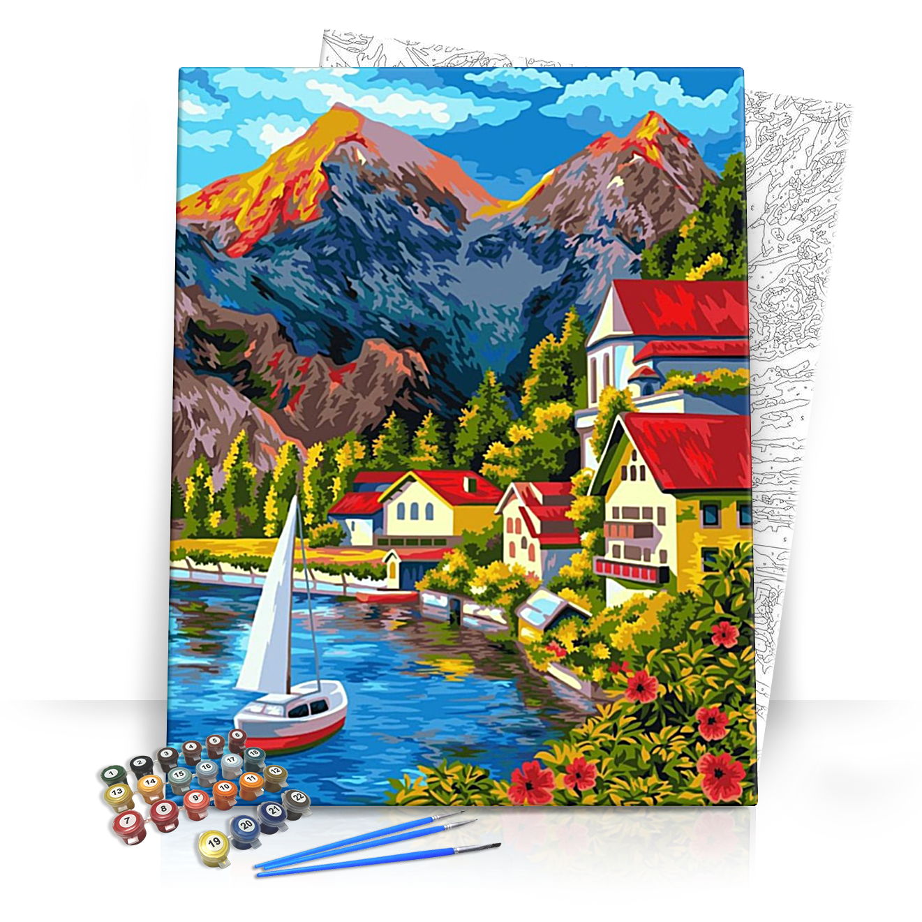Merüljön el a gyönyörű alpesi táj varázslatos világában! Ez a számfestő készlet lenyűgöző festményt kínál, amely a természet és a vidék szépségét ötvözi. Az élénk színek és a részletgazdag kidolgozás garantálja, hogy mindenki, kezdők és haladók egyaránt, élvezni fogja a festés folyamatát.
