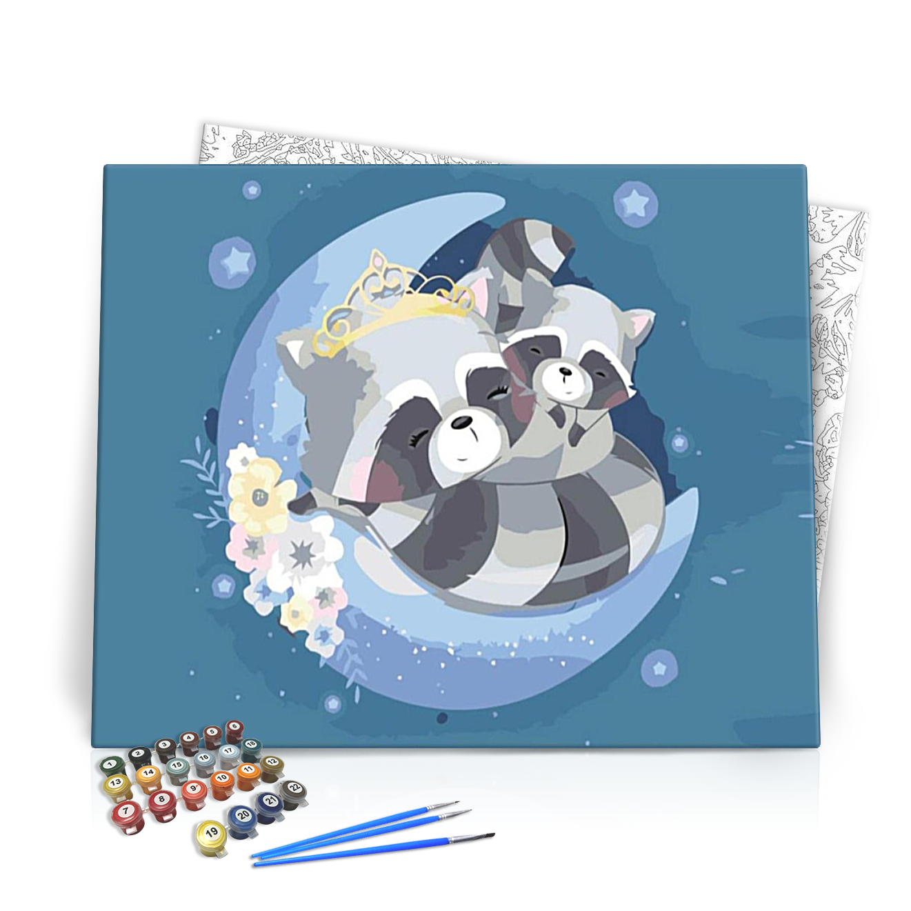 Ne habozz, engedd szabadjára a fantáziádat és alkoss valami igazán különlegeset az Alvó mosómedvék számfestő készlet segítségével!