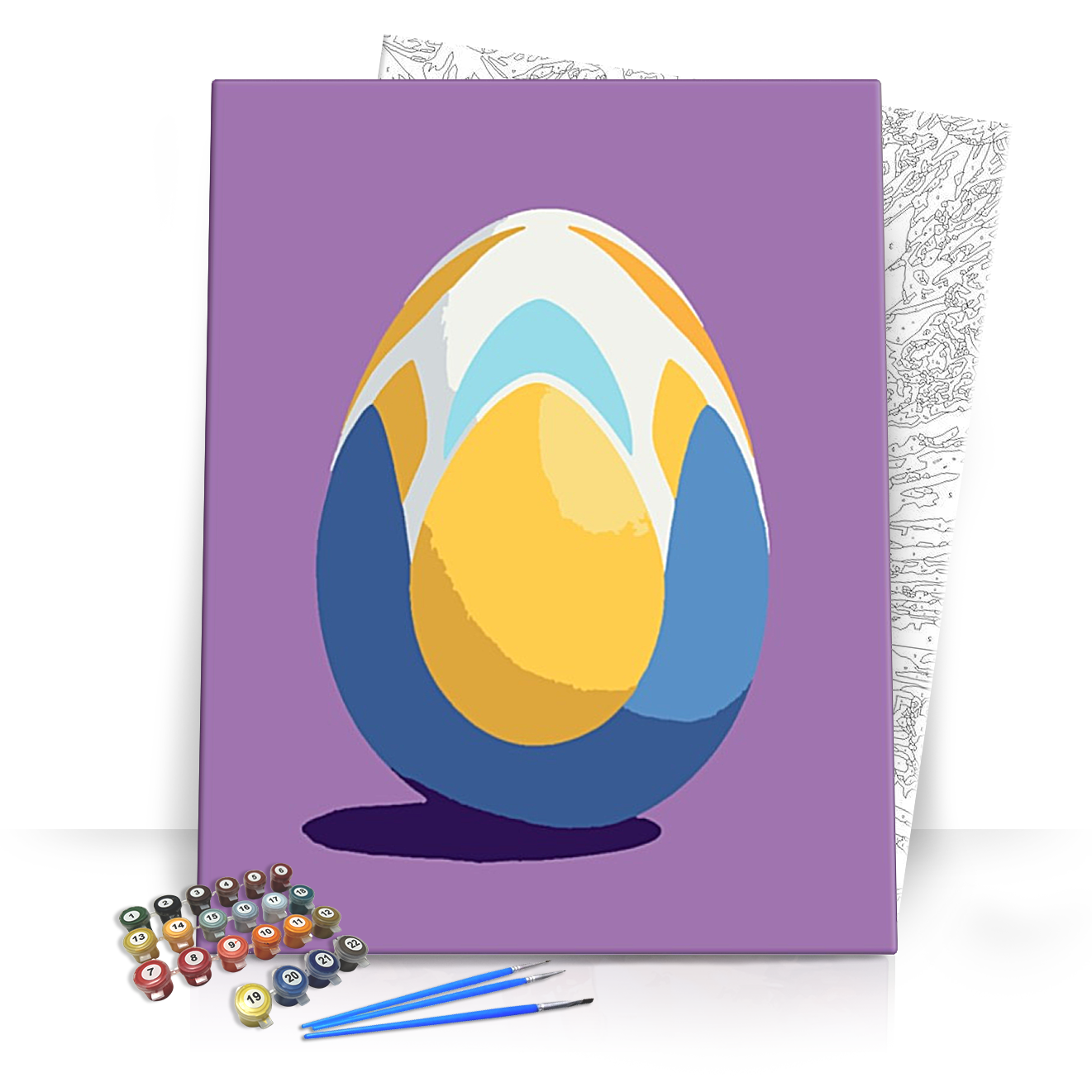 Merülj el a kreativitás tavaszi világában a Díszes Húsvéti Tojás húsvéti számfestő készlettel! Ez a szemet gyönyörködtető készlet lehetővé teszi, hogy saját kezűleg varázsolj életet egy gyönyörű, színes tojás képébe, amely tökéletes kiegészítője lehet a húsvéti dekorációnak. Az élénk sárga, kék és fehér színek tökéletes harmóniát alkotnak a háttér lila árnyalatával, így a végeredmény egy igazán mutatós és különleges műalkotás lesz.