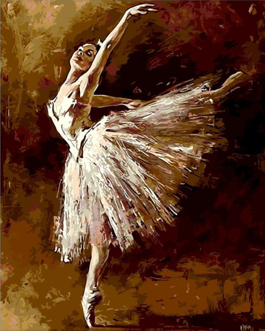 Engedd szabadjára kreativitásodat a Gyönyörű Balerina számfestő készlettel! Ez a káprázatos festmény egy elegáns balerina mozdulatát örökíti meg, amely tele vanGrace és művészi szépséggel. A balerina gyönyörű, fehér tutu ruhája szinte tündököl, míg a háttér meleg árnyalatai egy varázslatos, intim hangulatot teremtenek. Az élénk barna, bézs és krém színek harmonikus játéka segít kiemelni a kép dinamikus mozgását és szépségét.