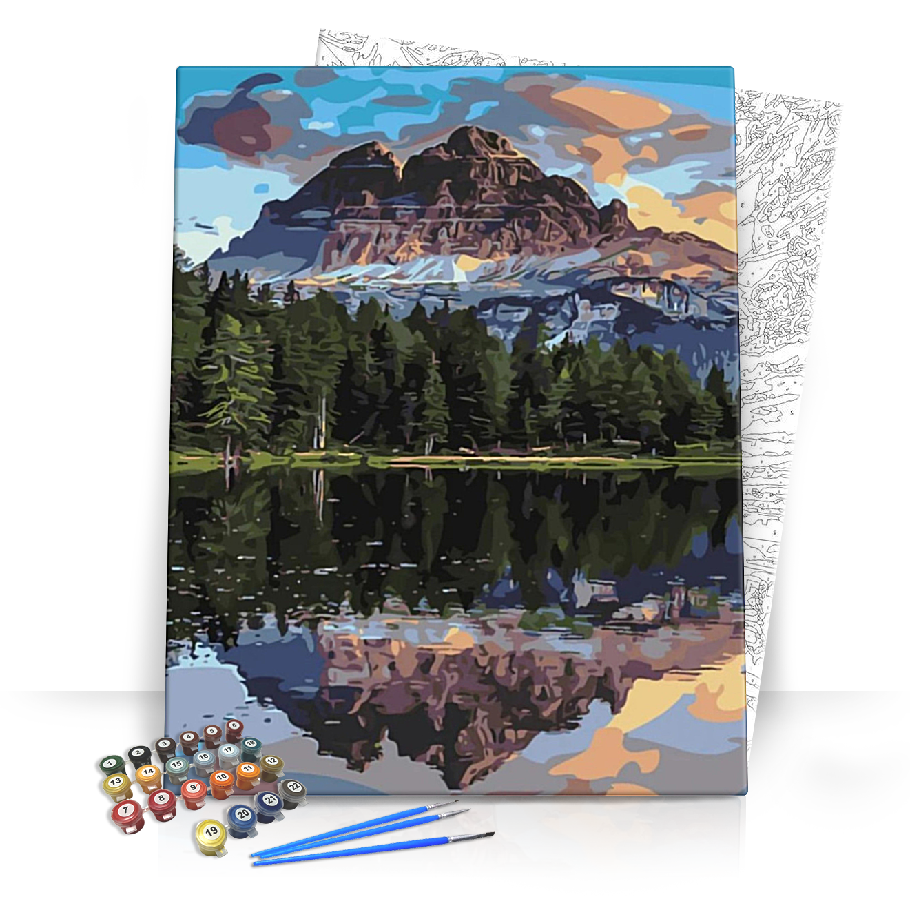 Merülj el a természet csodáiban a Gyönyörű természet - számfestő készlet segítségével! Ez a káprázatos festmény megidézi a hegyek és tavak varázsát, harmóniát teremtve a természet elemei között. A festmény középpontjában a majestatikus hegyek állnak, melyeket élénk színek és lenyűgöző kontúrok díszítenek, míg a tó tükörsima surface-reje tökéletesen visszatükrözi a tájat, romantikus atmoszférát teremtve.