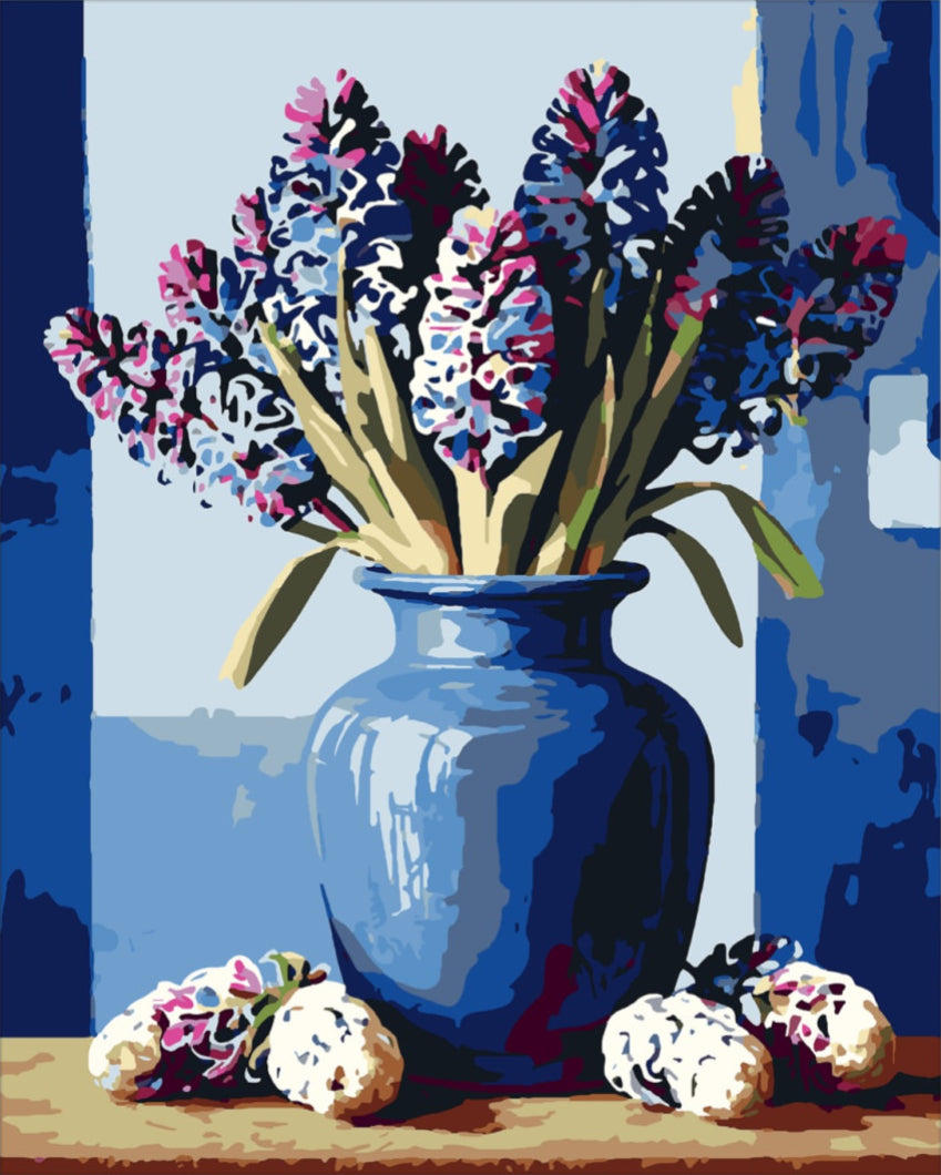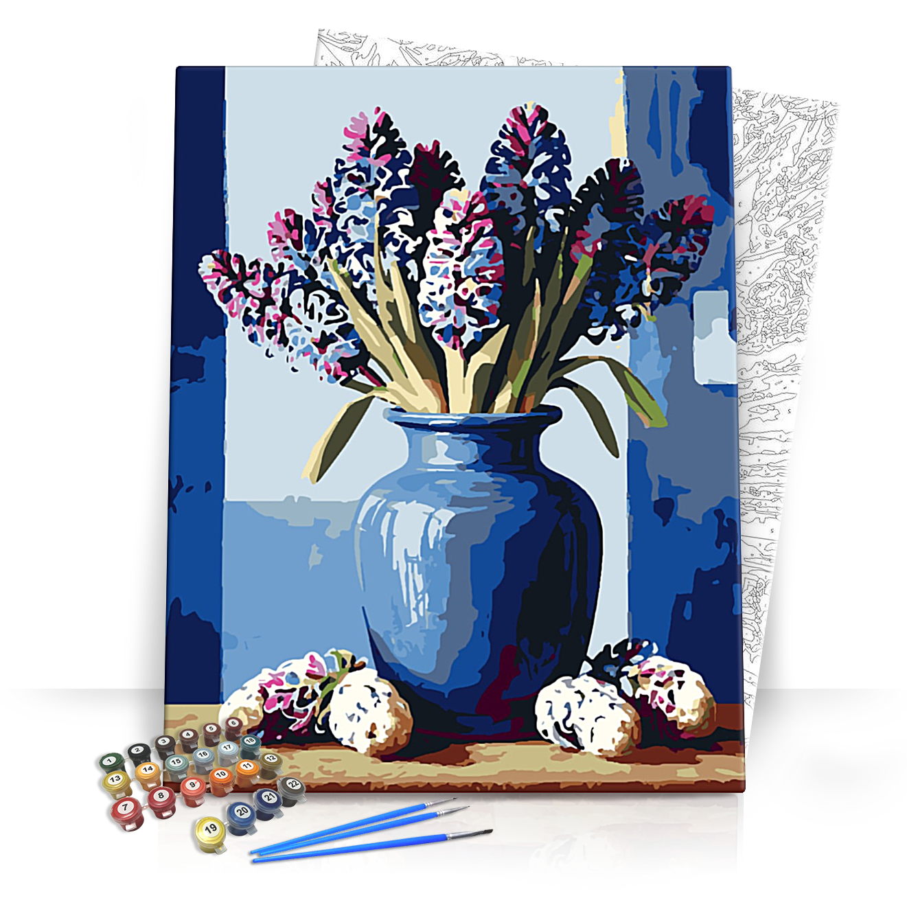 Fedezd fel a festészet varázslatos világát a Jácintvarázs számfestő készlettel! Ezzel a lenyűgöző képpel a tavasz színeit hozhatod el otthonodba, miközben relaxálsz és kreativitásodat kifejezed. A festmény középpontjában egy gyönyörű kék vázában elhelyezett jácint virágok állnak, amelyek színekben és formákban gazdag, élénk és vibráló megjelenésükkel mindenkit elbűvölnek.