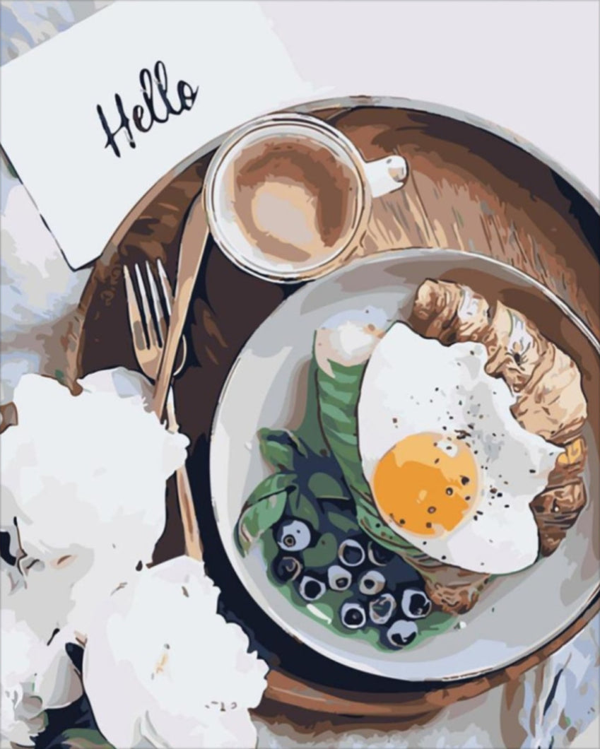 Ne habozz, könyvelj be magadnak egy varázslatos reggeli élményt a Kedves reggeli számfestő készlettel, és élvezd a festés minden pillanatát!