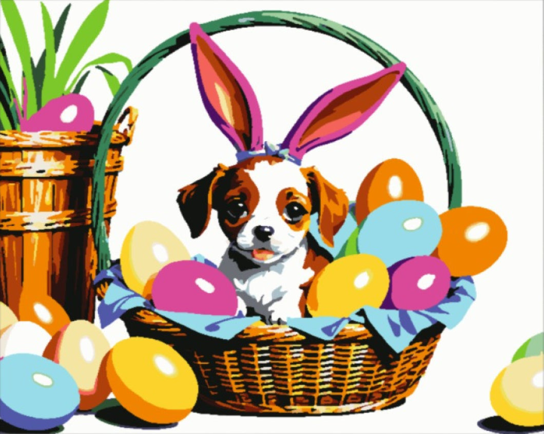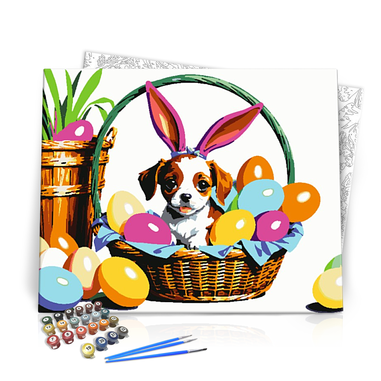 Kiskutya Húsvéti Kosárban - húsvéti számfestő készlet