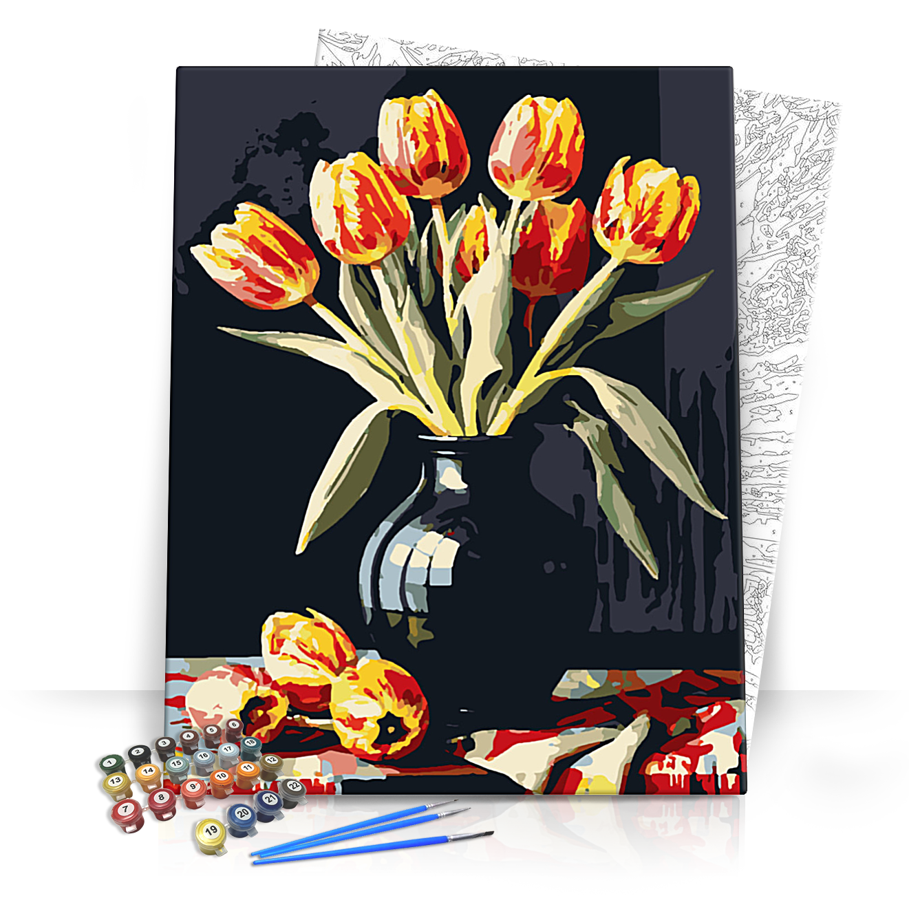 Fedezd fel a festészet varázslatos világát a Lángoló szirmok számfestő készlettel! Ez a lenyűgöző készlet nem csupán szórakoztató, hanem kreatív és relaxáló tevékenységet is nyújt, amely lehetővé teszi, hogy művészi alkotásokat hozz létre anélkül, hogy előzetes festői tudásra lenne szükséged. A készlet ezúttal gyönyörű tulipánokkal díszített képet kínál, ami élénk, meleg színeivel azonnal magával ragadja a nézőt.