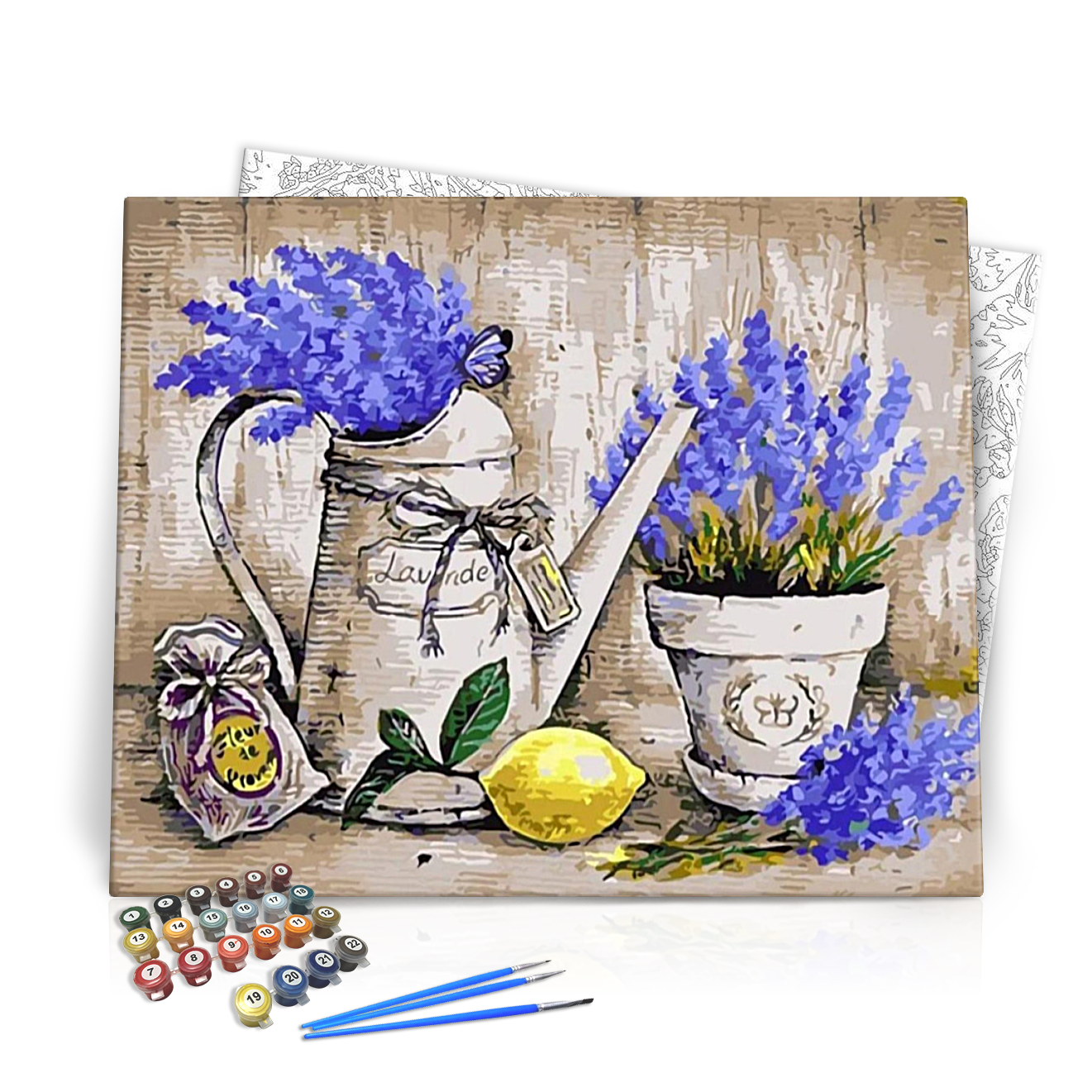 Merüljön el a természet varázslatos világában a Levendula - számfestő készlettel. Ez a gyönyörű festmény a levendulák élénk színeivel, a különleges vízkeretes öntöző kannával és egy friss citrommal az asztalon egy hangulatos vidéki életérzést idéz elő. A leírhatatlan szépség, amit a lila levendulavirágok és a kékes árnyalatok adnak, garantáltan magával ragadja Önt, miközben színes emlékeket fest róla.
