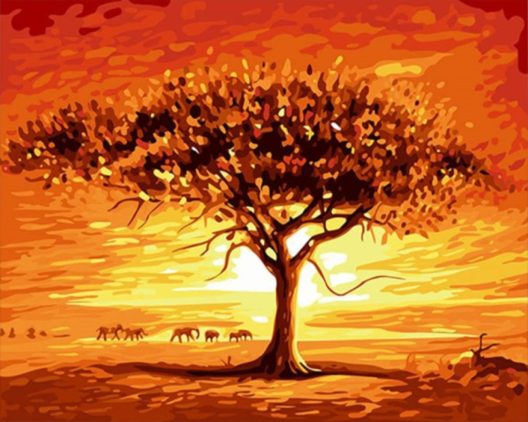 Magányos Fa a Szavannán - számfestő készlet