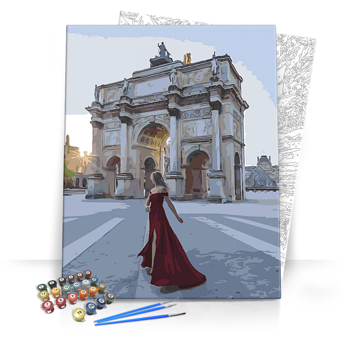Merülj el a színek és formák világában a Magányosan számfestő készlettel, ahol egy elegáns nő sétál a festői hátterű kapu alatt. A kép hangulata romantikus és nosztalgikus, amely lehetőséget ad arra, hogy saját művészi kifejezésedet megéld, bármilyen előzetes festői tudás nélkül!
