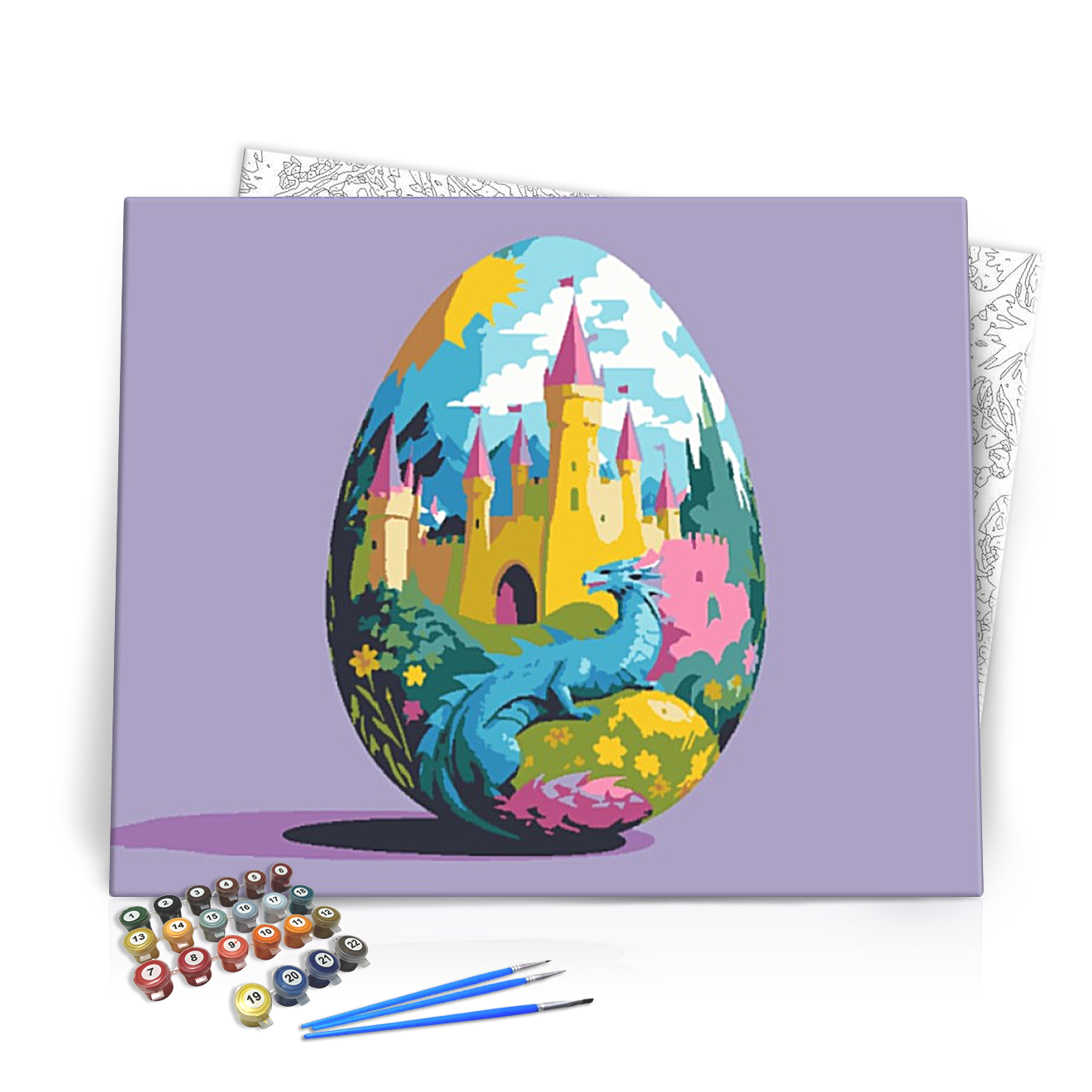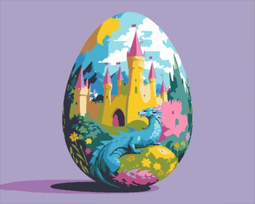 Megdöbbentő színek és varázslatos formák várnak rád a Mese Tojás - húsvéti számfestő készlet révén! Ezzel a szemet gyönyörködtető készlettel, a festés öröme mindenkinek elérhetővé válik, legyen szó tapasztalt művészekről vagy kezdőkről. A készlet lehetővé teszi, hogy saját kezűleg életre keltsd ezt a mesebeli tojást, amely egy gyönyörű kastélyt és egy színes sárkányt ábrázol. Az élettel teli virágok és a tündöklő napfény minden egyes ecsetvonást örömmel töltenek meg!