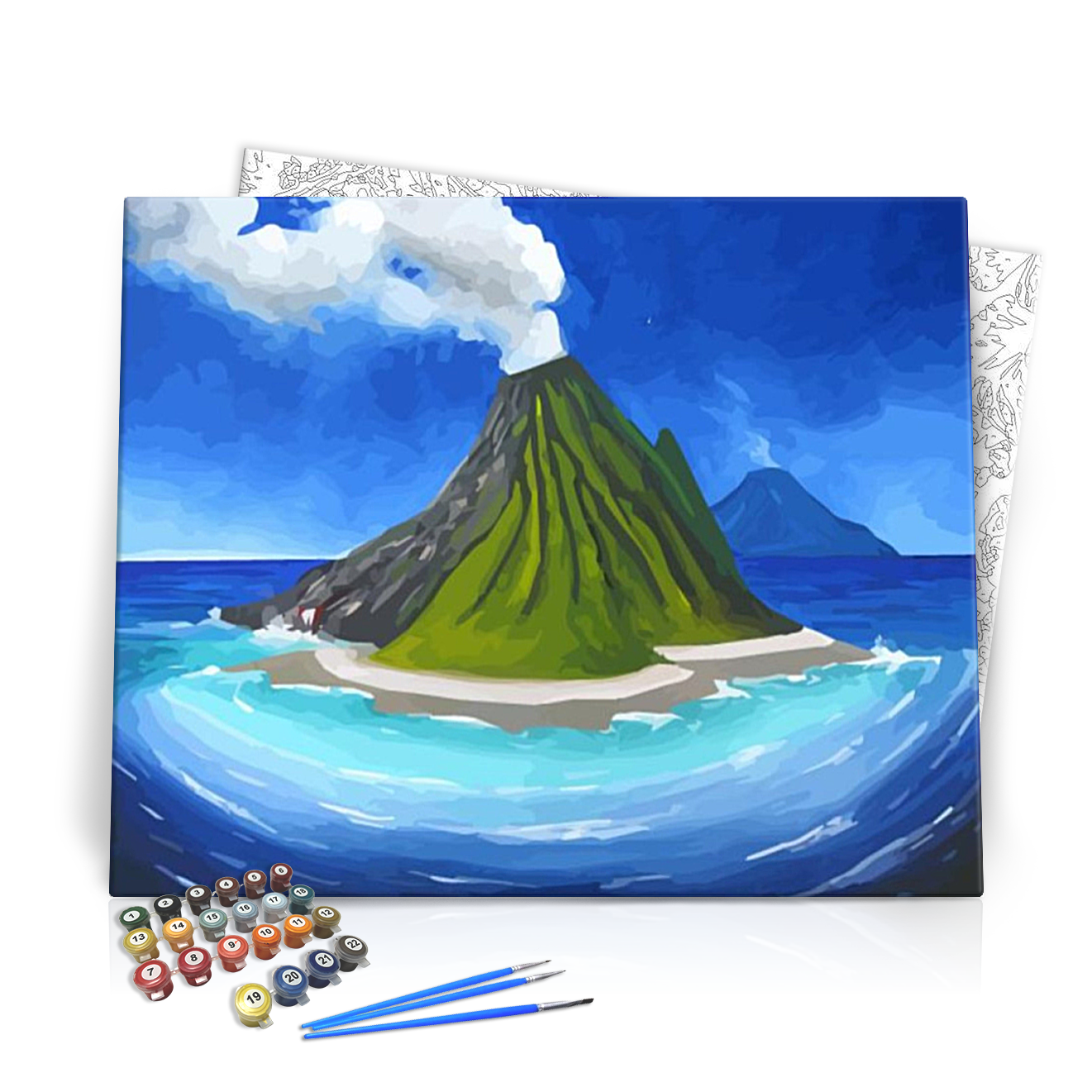 Merülj el a festés varázslatos világában e lenyűgöző számfestő készlettel, amely a **Mesebéli vulkán** című képet hozza el otthonodba! Ez a csodás műalkotás a természet szépségét és erejét tükrözi: a zöldellő vulkán, amely füstöt okád, egy üde, kék óceán mellett áll, ahol a hullámok lágyan söprik a homokos partot. A kép élénk színei és részletes formái garantálják, hogy minden festés során igazi művésznek érezd magad.