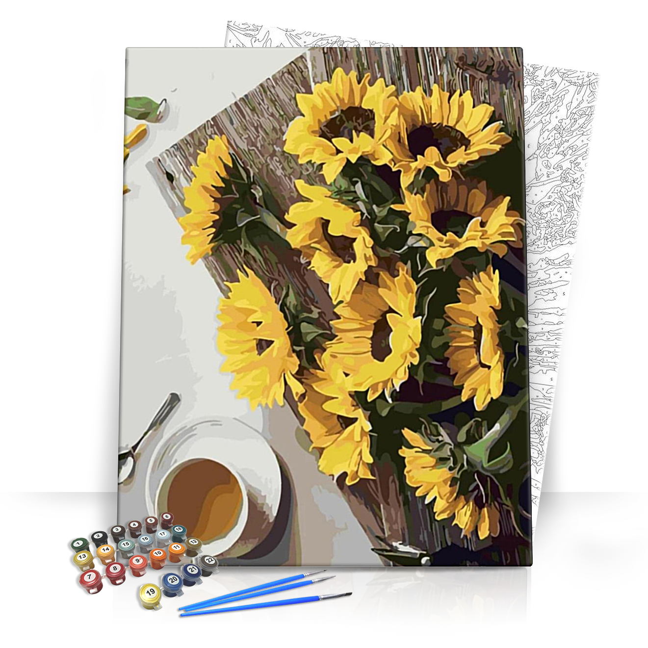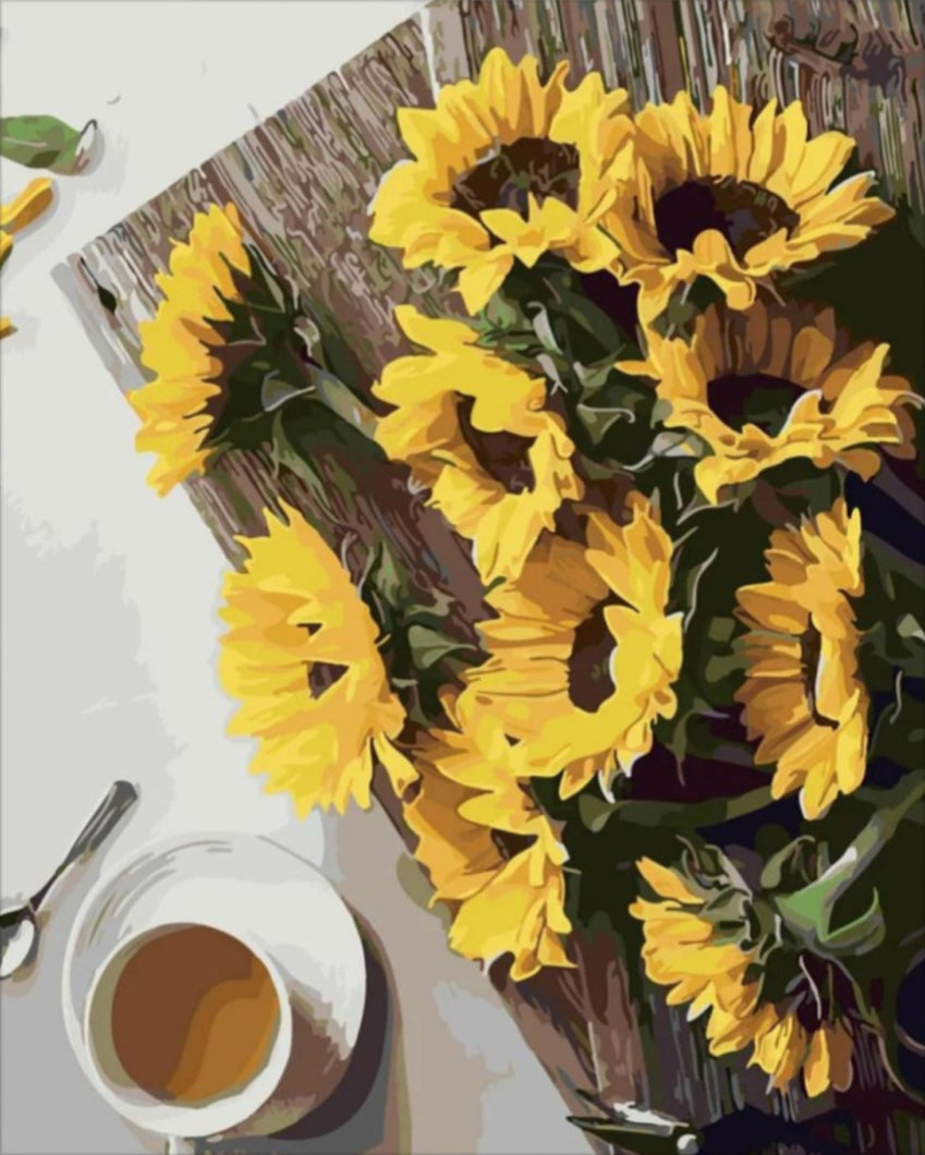 Ne habozz, éld át a festés örömét a Napraforgók az asztalon számfestő készlettel!