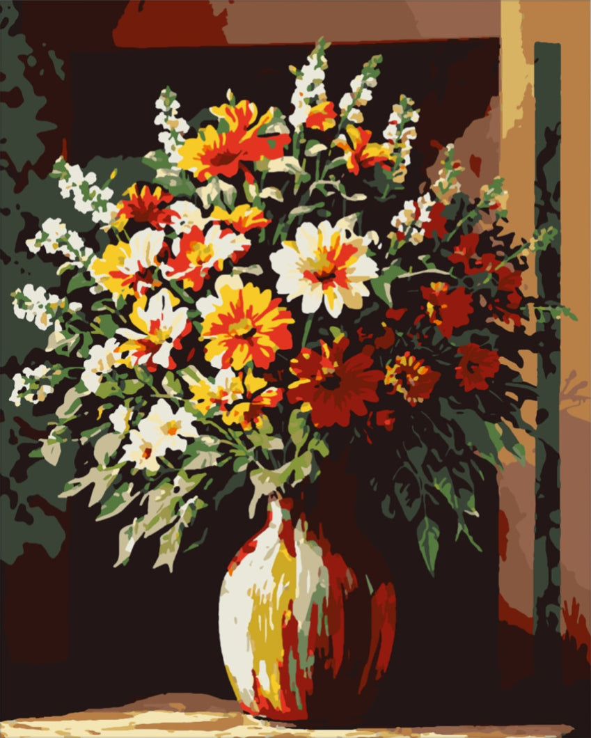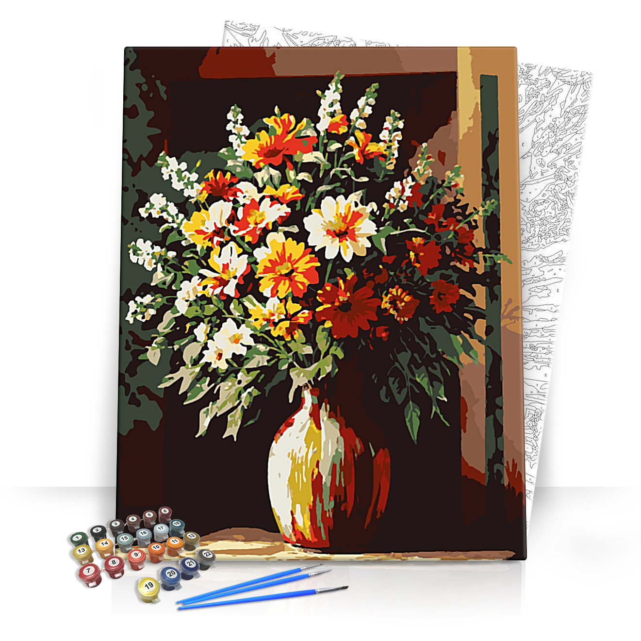 Merülj el a festészet varázsában az Őszi kerti virágcsokor számfestő készlettel! Ez a szemet gyönyörködtető, virágokkal teli kép élettel tölti meg otthonodat, és tökéletes választás minden kreatív lélek számára. A részletgazdag kompozíció, melyben a napfényes sárgák, élénk pirosak és tiszta fehérek harmonikus keveréke bontakozik ki, valóban életre kelti a szobát, ahol kihelyezed.