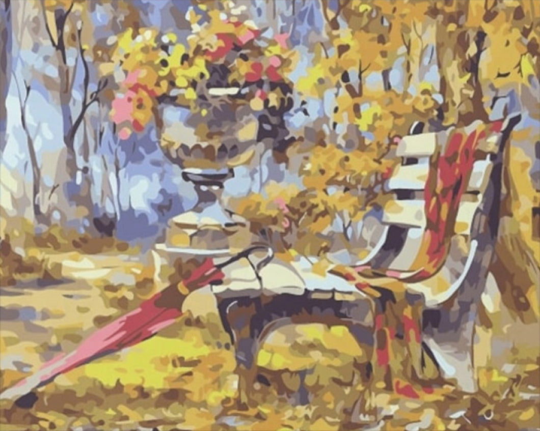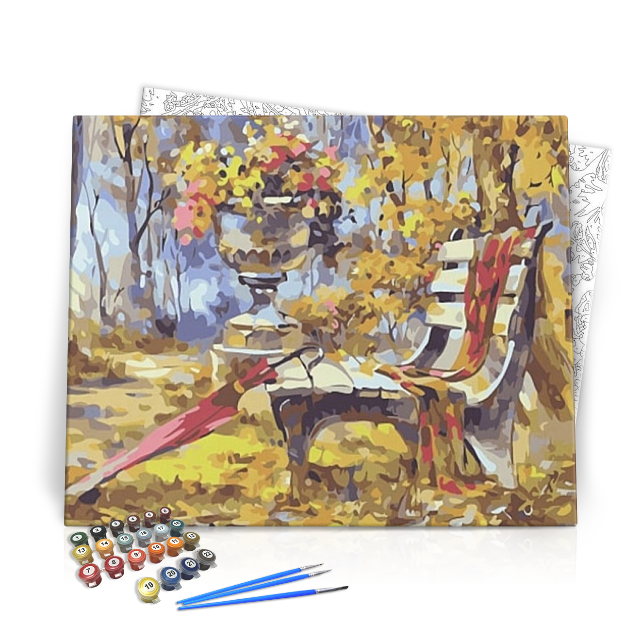 Merülj el a művészet csodáiba az Őszi Pad - számfestő készlet segítségével! Ez a lenyűgöző festmény a lágy őszi színek harmóniájával és az avar elénk tárulkozó csodáival segít szabadjára engedni kreativitásodat. A gyönyörű pad, a virágzó virágokkal teli váza és a piros esernyő nosztalgikus hangulata a természet színeivel és formáival varázsol el, lehetővé téve, hogy egyedülálló műalkotást hozz létre, amely szobád éke lehet.