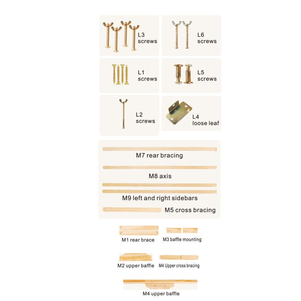 - akasztós készlet, amely 2 csavart és 2 kis kampót tartalmaz.
