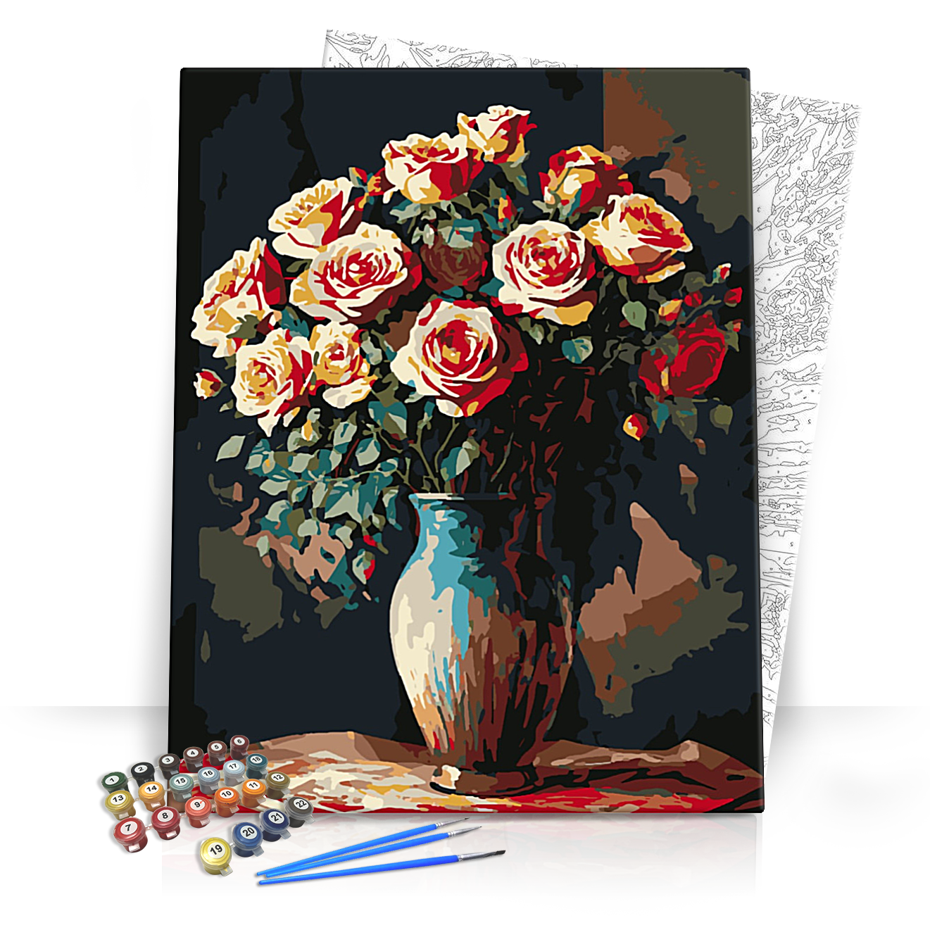 Fedezze fel a Rózsás elegancia varázslatos világát, ahol a festészet és a természet szépsége találkozik! E gyönyörű virágcsokor, rózsák bőséges sorával, remek lehetőséget kínál a kreativitás kibontakoztatására, még a kezdők számára is. Merüljön el a színek és formák élményében, miközben saját műalkotását varázsolja a vászonra!