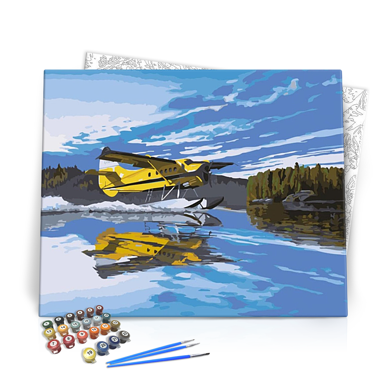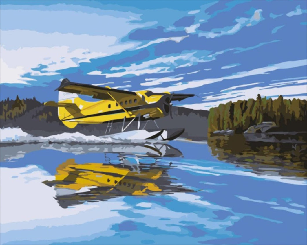 Szállj fel a kreativitás szárnyaira a Sárga hidroplán számfestő készlettel! Ez a lenyűgöző készlet tökéletes lehetőséget kínál, hogy felfedezd a festés örömét, legyen szó kezdőkről vagy tapasztalt művészekről. A készlet segítségével egy gyönyörű tájat festhetsz meg, ahol a ragyogó sárga hidroplán egy tükörsimán simogató vízfelszín felett repül, körülötte pedig a folyó zöld lombkoronái és a kék égbolt látványos játéka dominál. A kép felhői és a víz tükröződése szemet gyönyörködtető és meditatív élményt nyújt.