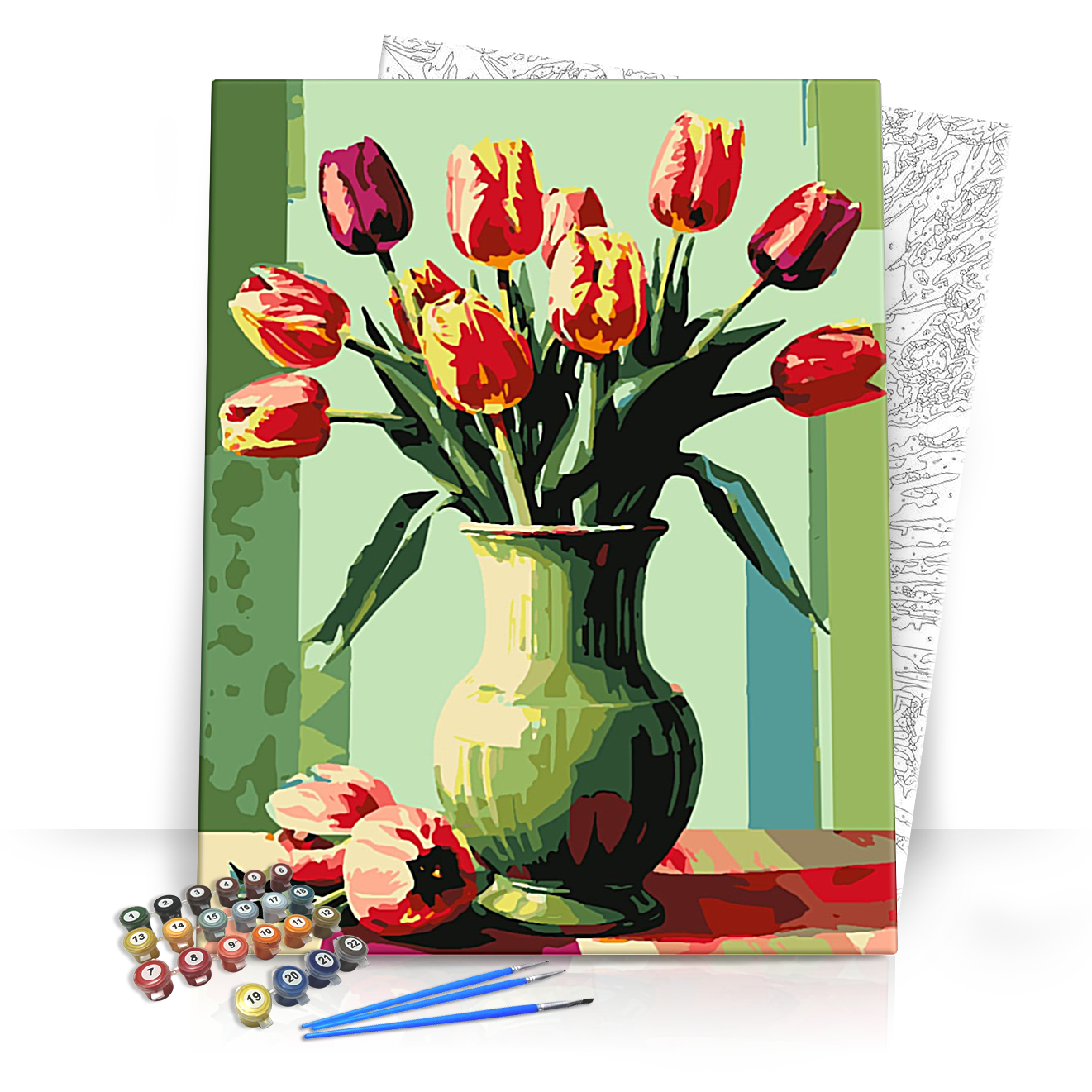 Engedd szabadjára a kreativitásodat a Színkavalkád vázában - számfestő készlettel! Ez a gyönyörű készlet lehetőséget ad arra, hogy a vászonra varázsolj egy vibráló virágkompozíciót, amely tele van élettel és színnel. A festett tulipánok mindenki szívét meghódítják, és otthonod dísze lesz. Élvezd a festés örömét, akár kezdő, akár tapasztalt művész vagy!