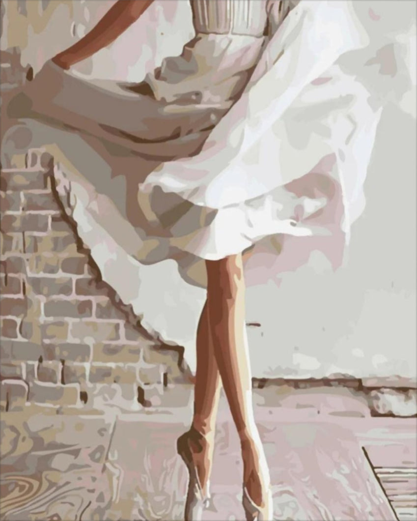 Fedezd fel a festészet örömét ezzel a különleges, táncot idéző motívummal, amely egy sejteket kerítő balerina eleganciáját örökíti meg. A lágyan fodrozódó fehér ruha és a lábak ringó mozdulatai szinte életre kelnek ezen a csodálatos vásznon, amely tökéletes kifejeződése a mozgás szépségének. Az artisztikus stílus és a részletes kidolgozás mindenki szívébe belopja magát.