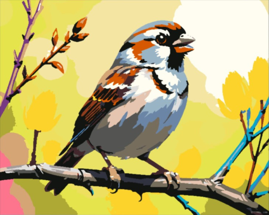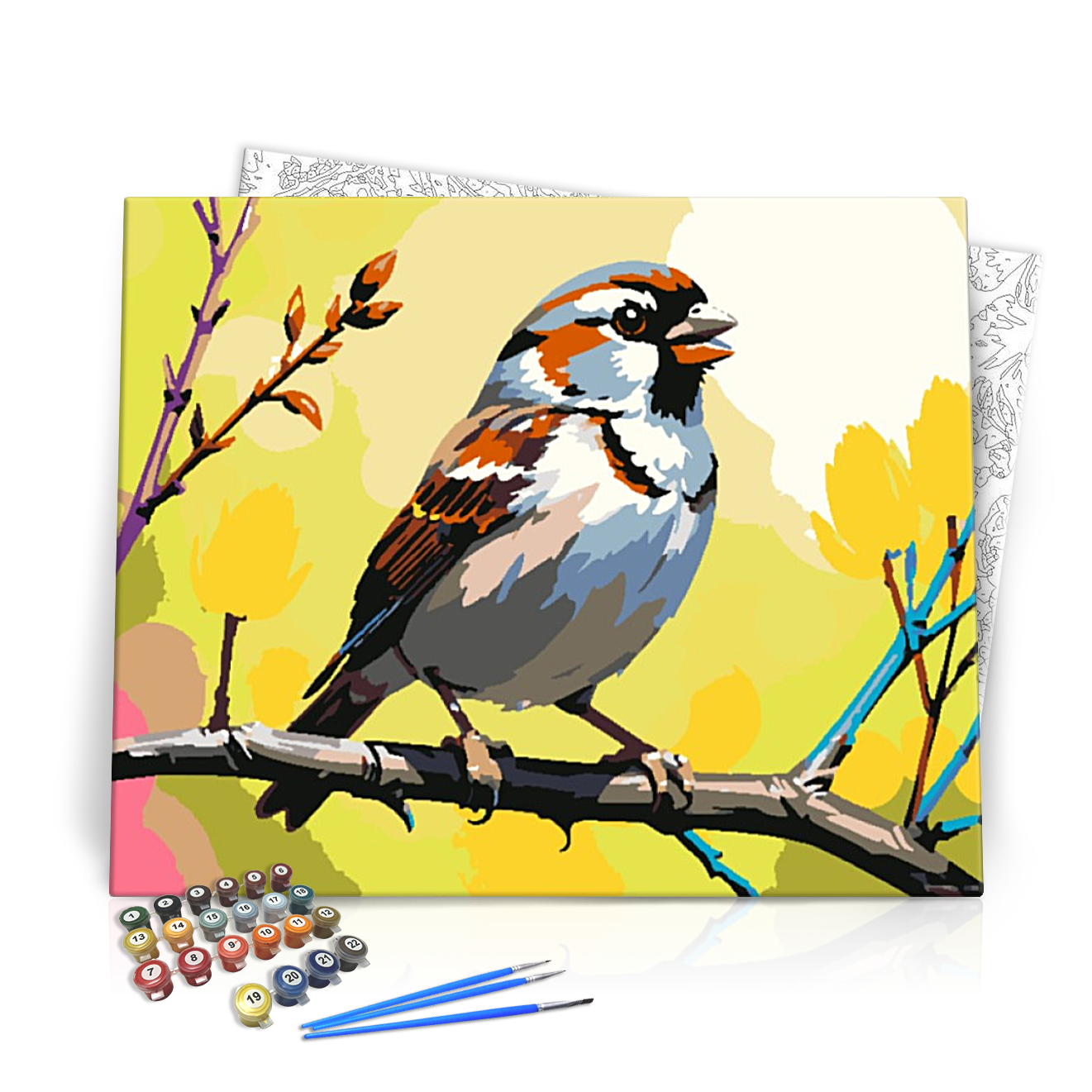Merülj el a tavasz varázslatos szépségében a Tavaszi Madárka számfestő készlettel! Szabadítsd fel kreativitásodat, és tapasztald meg a festés örömét a csodálatos madárképpel, amely színpompás zsöntön éneklő madarat ábrázol. Az élénk sárgák, zöldek és narancsok mellett a karakteres madár részletei életre kelnek, varázslatosan hangulatos tavaszi atmoszférát teremtve.