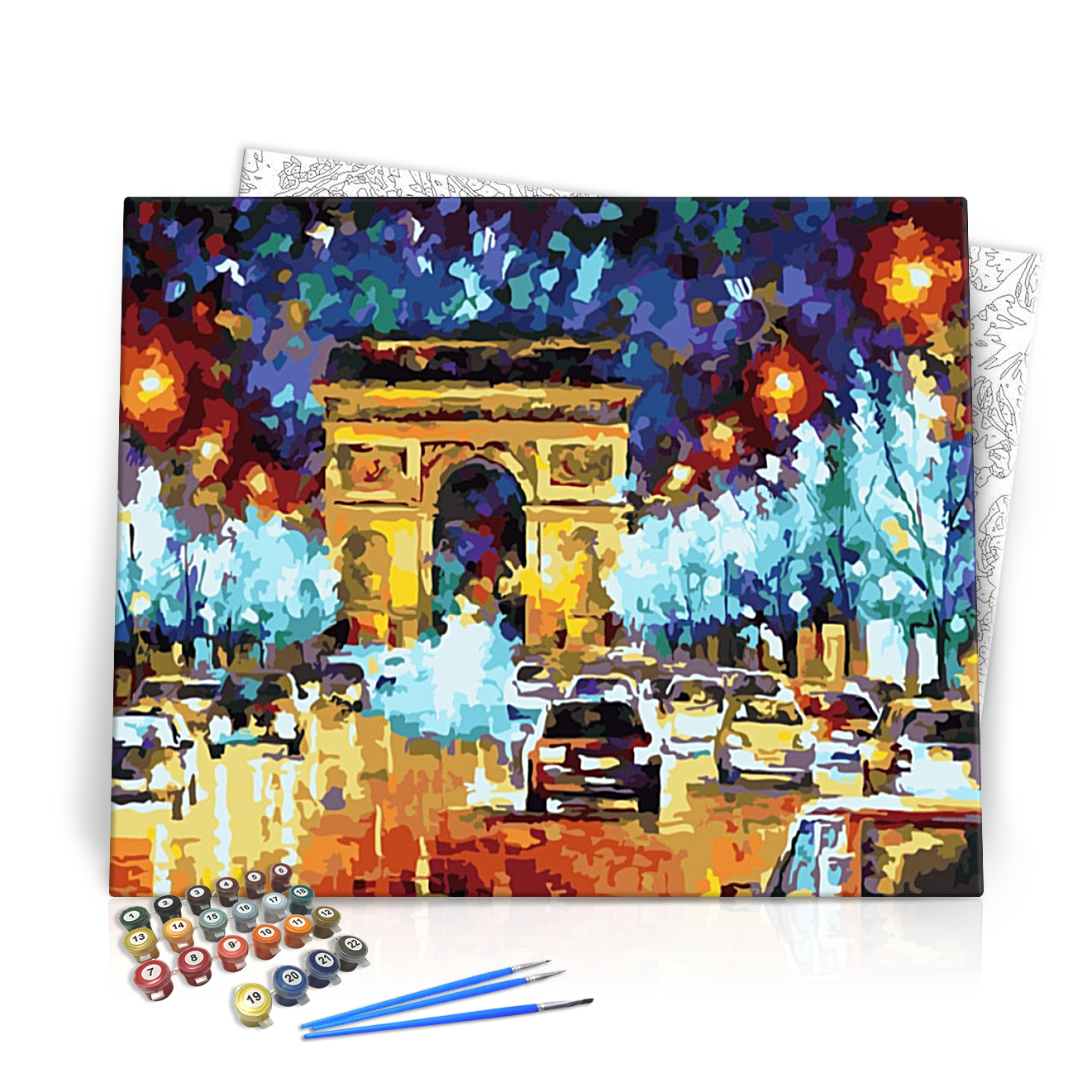 Merülj el a városi éjszaka varázsában a Városi Autók számfestő készlettel! Ez a csillogó festmény, amely a híres diadalívet ábrázolja, élénk színekkel és dinamikus formákkal megörökíti a város szívének nyüzsgését. A szervesen összefonódó világítás, a meleg tónusok és a friss városi levegő érzését adja, lehetővé téve, hogy bárki, aki a kezébe veszi a készletet, átélje a festés örömét.