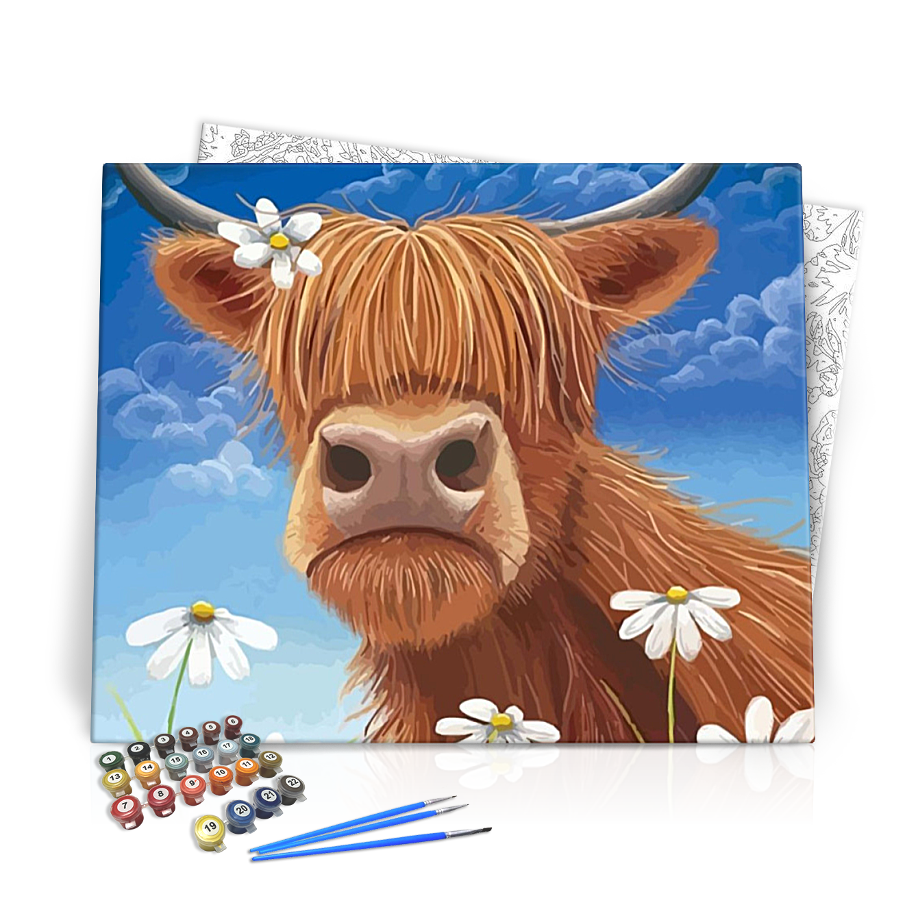 Fedezze fel a kreativitás világát a Vicces boci számfestő készlettel! Ez a lenyűgöző festmény kifejezetten azok számára készült, akik szeretnék otthonukban saját kezűleg megalkotni ezt a vidám és bájos motívumot. Az e képen látható boci szemei csillognak, bundája meleg árnyalatú, míg a háttérben a világoskék égbolt és a puha felhők sétálnak a fűben virágzó margaréták mellett.