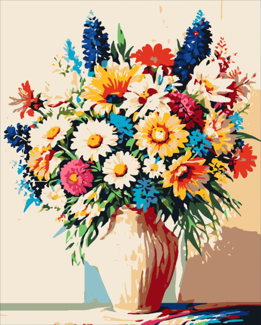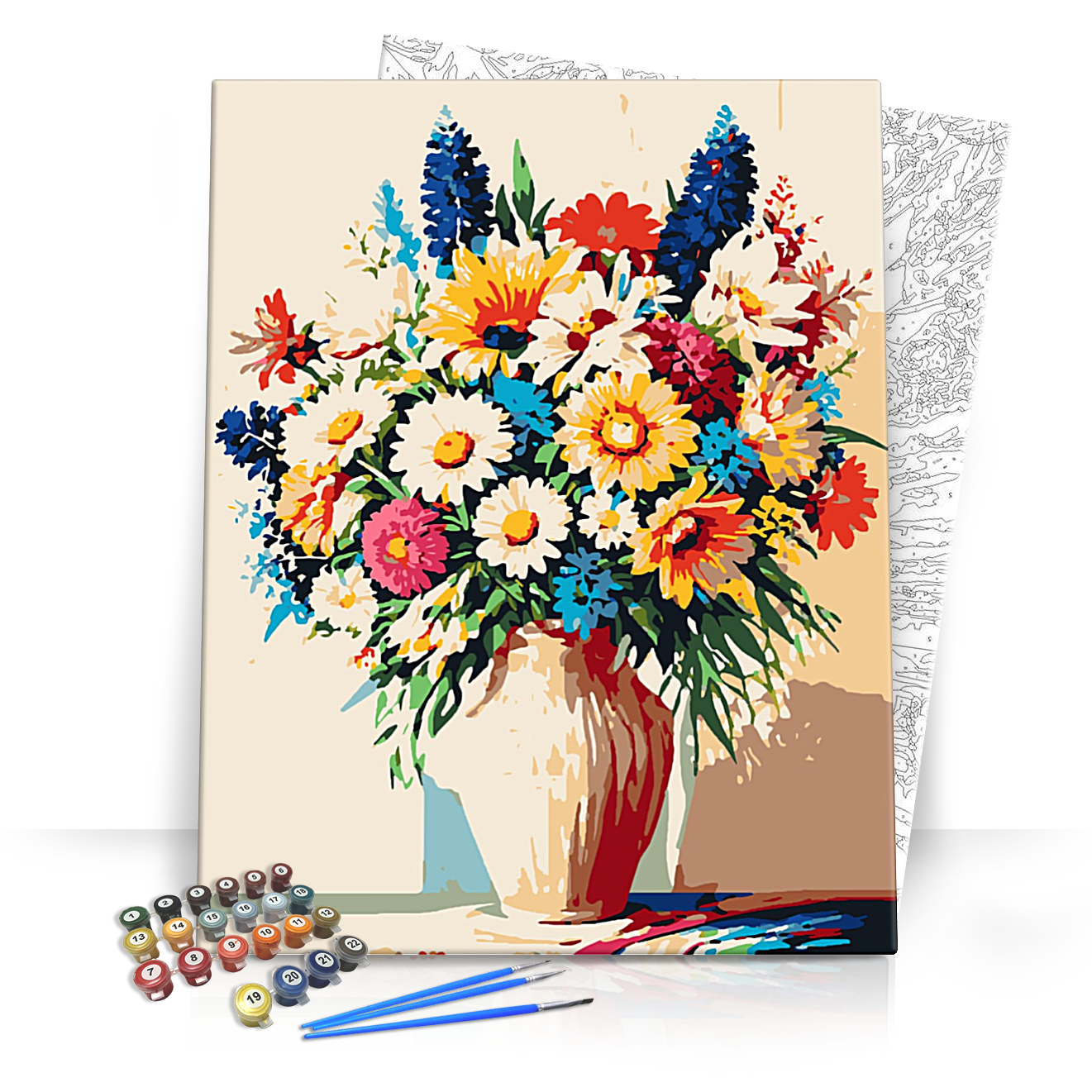 Merülj el a festés örömében a Vidám virágok számfestő készlettel! Ez a gyönyörű virágkompozíció, tele színekkel és életerővel, tökéletes választás, ha szeretnél kicsit alkotni és kikapcsolódni. A készlet kiválóan alkalmas különböző festői tapasztalatokkal rendelkező bárki számára, hiszen élvezhető előzetes festői tudás nélkül is!