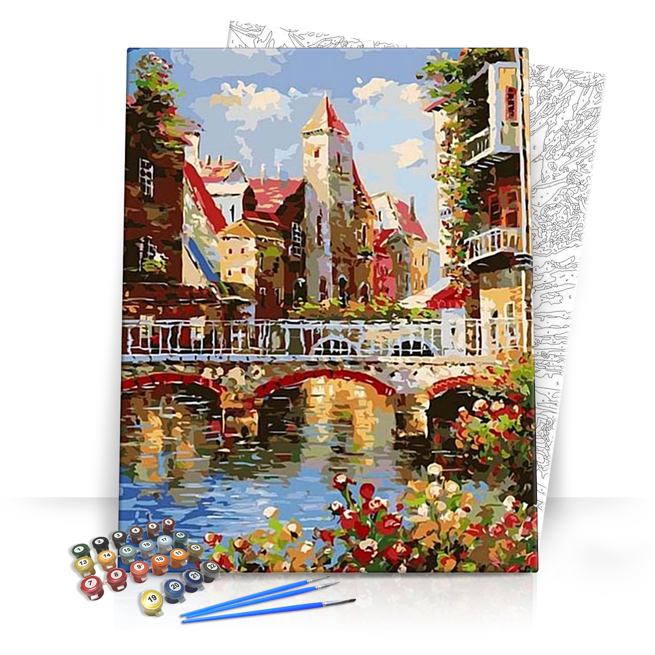 A Virág Híd Amszterdamban készlet különböző méretekben elérhető: 40x50 cm, 50x60 cm, 60x70 cm, így könnyedén megtalálhatod a számodra legmegfelelőbb variációt. Mindezek mellett, a termék Magyarországon gyártott számfestő készlet, és elérhető kerettel és keret nélkül is, hogy mindenki igényeit kielégítse!