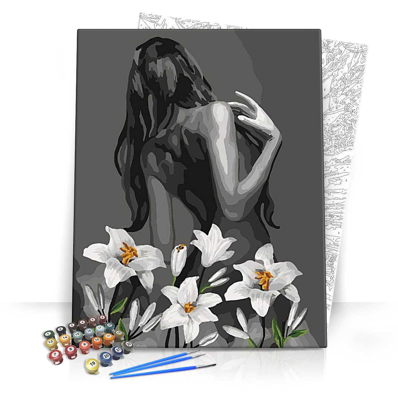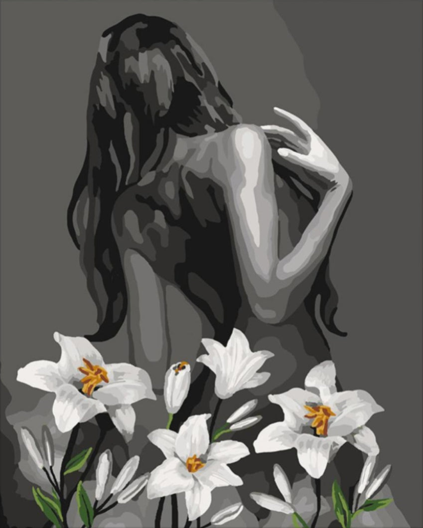 Fedezd fel a Virággal takarva számfestő készlet varázslatos világát, amely ötvözi a művészetet és a kreativitást! Ez a rendkívüli festmény a nőiesség és a természet szépségét érzékelteti, egy elegáns női alak részletes kontúrjaival, amely körül gyönyörű, fehér liliomok bontogatják szirmaikat. A mesteri árnyalatok és a szemet gyönyörködtető kontrasztok valódi élvezetet nyújtanak minden festő számára.