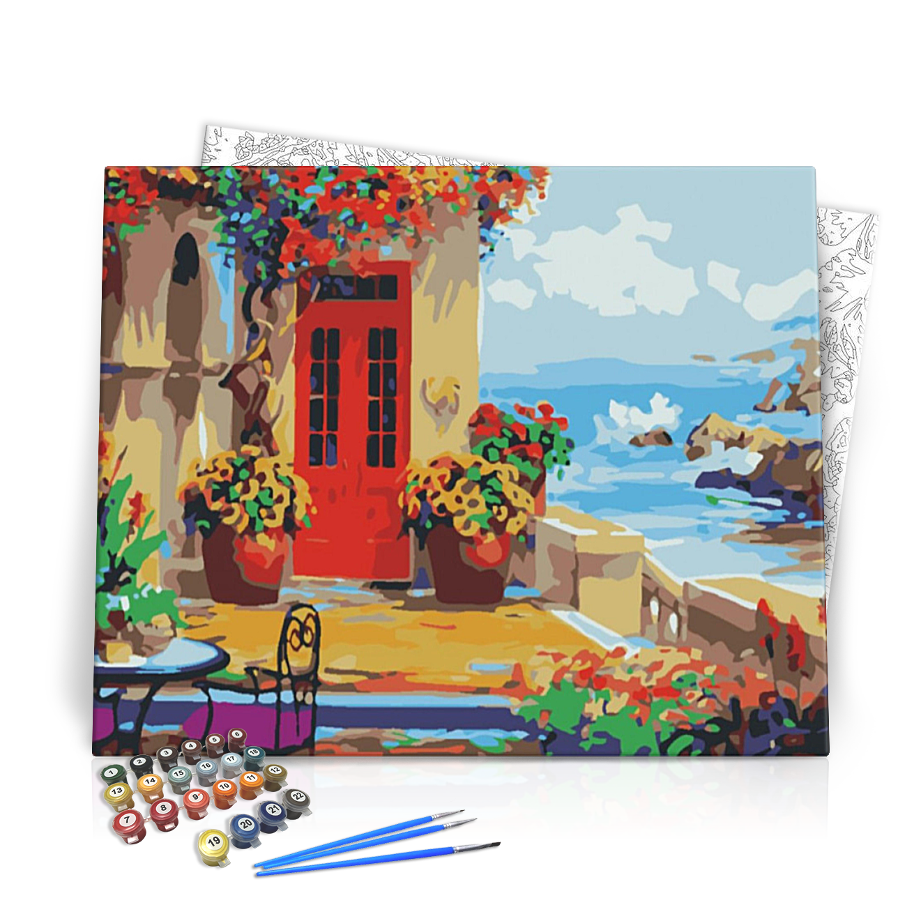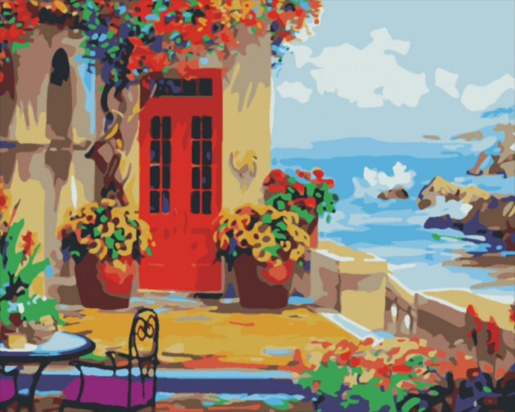 Merülj el a festészet világában e csodálatos Virágos Terasz számfestő készlettel, amely egy idilli tengerparti teraszt ábrázol, tele virágokkal és élénk színekkel. A gyönyörű piros ajtó, a színes virágcserepek, valamint a tenger páratlan nyugalma együtt varázsolják el a nézőt. A napfényes terasz hangulata azonnal elrepít a mediterrán vidékre, ahol a természet szépsége és az otthon melege találkozik.