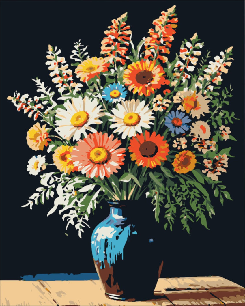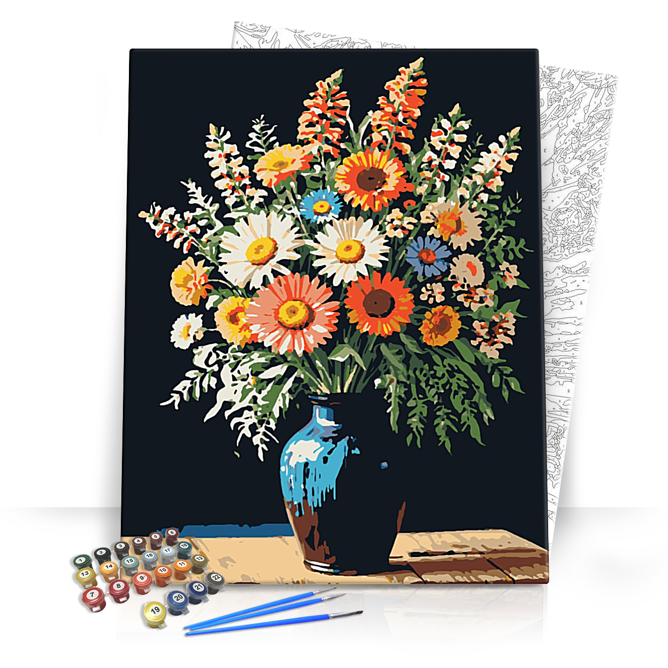 Merülj el a festészet világában a Virágzó életöröm számfestő készlettel! Ez a vibráló virágcsokor tele van élettel és színkavalkáddal, mely garantáltan feldobja a napodat. A sűrű, üde színek és a szépen kidolgozott részletek miatt ez a festmény örömöt hoz mindenki otthonába, akinek a keze közé kerül.
